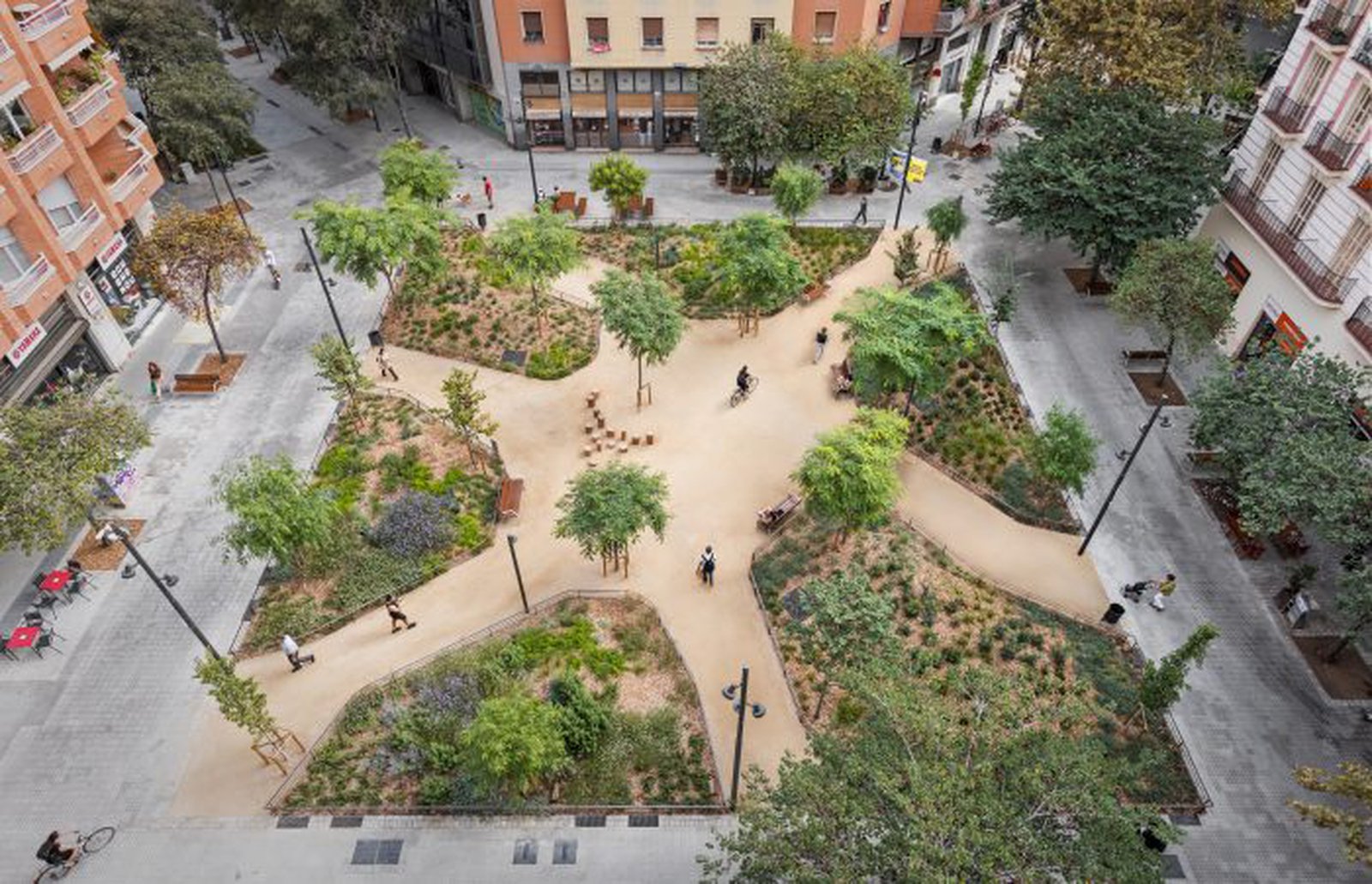 O projeto prevê a criação de 21 ruas verdes, no total de 33 km, e 21 novas praças localizadas principalmente nos cruzamentos, aproveitando o traçado urbano existente. Essas intervenções resultarão em 3,9 hectares de novos espaços públicos, além de 33,4 hectares de áreas prioritárias para pedestres e 6,6 hectares de novas áreas verdes urbanas, contribuindo para uma cidade mais sustentável, saudável e voltada às pessoas.